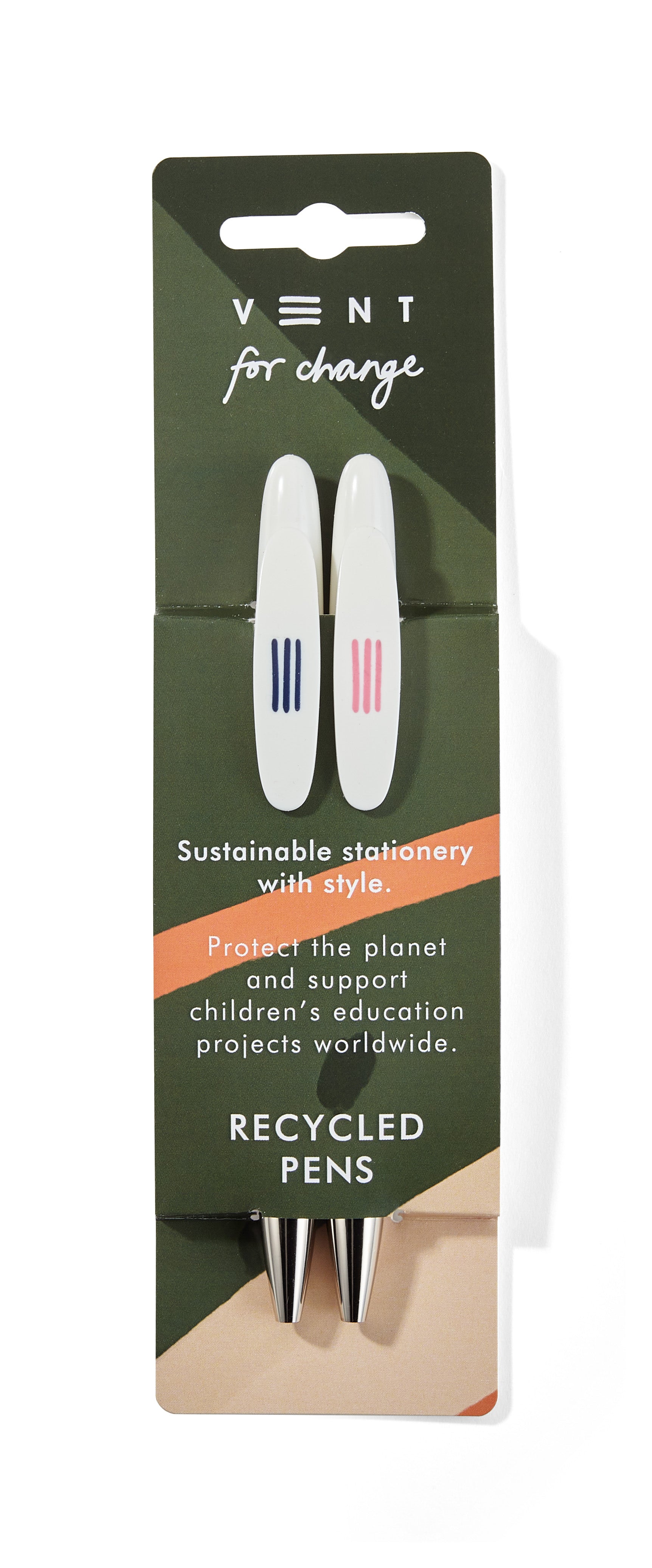 Vent for Change pens made out of recycled single use plastic drinks bottles.
